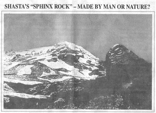 - Sur le Mont Shasta, Frank Bascom (organisateur de treks pour l’AMORC, entre autres) découvre une pierre qui semble avoir été gravée et présenter une figure quasi-humaine. Si les géologues assurent qu’il s’agit simplement des signes de l’érosion, nombreux sont ceux qui pensent qu’on pourrait bien, au contraire, avoir affaire à un portrait de Lémurien. On surnomme le rocher « the Sphinx rock ». L’hypothèse de sculptures géantes, derniers témoins d’une civilisation antédiluvienne (et peut-être pré-humaine), présentes un peu partout en Californie, semble se confirmer.