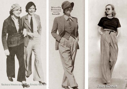 Les vêtements d’hommes ne sont plus réservés aux lesbiennes : dans bien des cas, les travailleuses en usine ont adopté les vêtements de leur mari parti au front, par exemple. Ces vêtements sont également prisés par celles qui veulent affirmer leur indépendance, ou tout simplement par celles qui ont peu de moyens, le prêt-à-porter masculin étant fréquemment soldé.