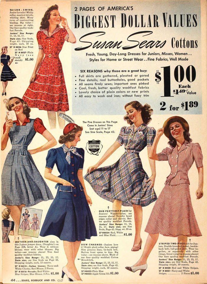 Le corset se porte encore mais est nettement plus relâché que dans les décennies précédentes. La taille doit encore être marquée mais on tolère une silhouette un peu plus épaisse que dans les années précédentes : une Américaine patriote est non seulement une épouse, mais une mère, et des hanches solides ou une poitrine généreuse n’ont plus rien de honteux. L’idéal féminin, en tous les cas, se décline avant tout dans son rôle relationnel : elle est d’abord une épouse, une mère, une fille, une patriote, et beaucoup de publicités le font sentir, qui présentent leur cible dans ce type de rôle.