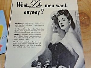 La lingerie est désormais très courante, et les dessous affriolants font partie de la tenue normale d’une bonne épouse attendant le retour de son mari. La plupart des publicités pour ce type de dessous surfent d’ailleurs sur des messages de type « Comment le satisfaire »/ »Le repos du guerrier », etc. Pour qui porte des bas (le collant n’existe pas encore et les bas auto-adhésifs non plus), le porte-jarretelles est une obligation.