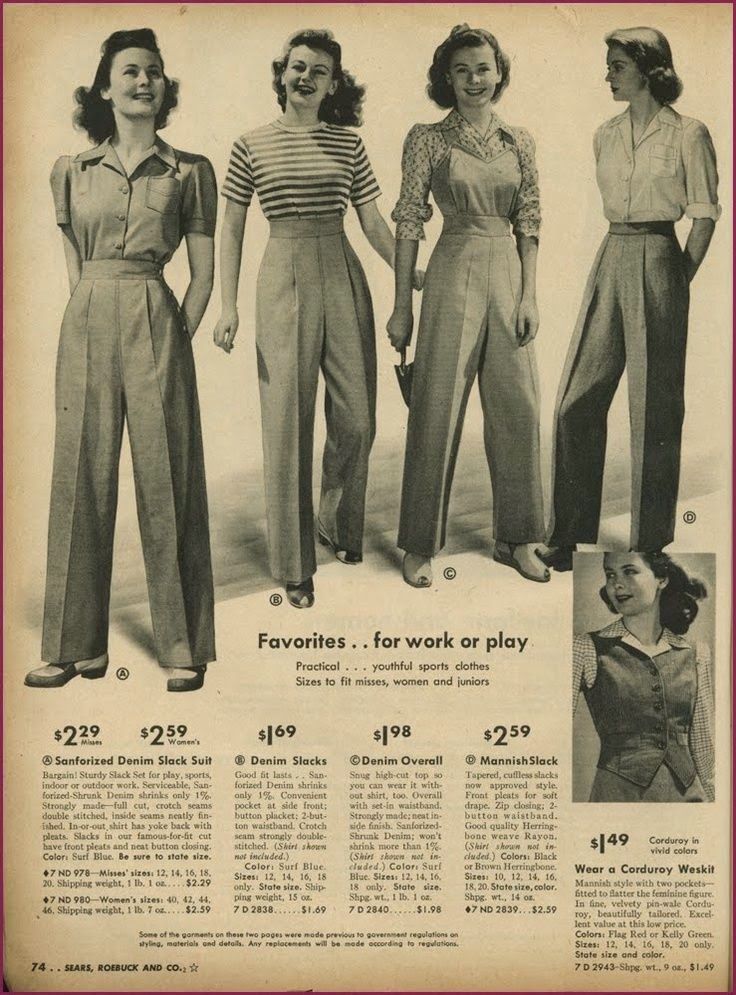 La jupe se porte droite et au genou : il n’est donc pas rare de montrer ses mollets. Les bas nylon sont populaires mais, le nylon étant lui aussi rationné, relativement rares. Dans les régions chaudes, comme la Californie, il n’est pas rare de voir des femmes mollets nus en été, ce qui a amené nombre d’entre elles à se mettre à s’épiler ou se raser les jambes, pratique qui était encore relativement originale (et sulfureuse) vingt ans plus tôt. Même celles qui ne le font pas portent très souvent des bas transparents ou couleur chair, ce qui, également, aurait choqué en 1920.