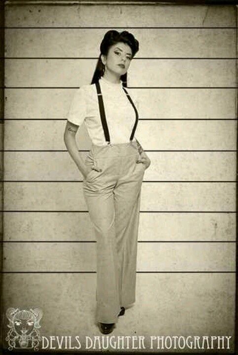 Le pantalon se porte très haut, avec la ceinture au niveau du nombril. Les bretelles ne sont plus systématiques, et on y préfère généralement une simple ceinture.